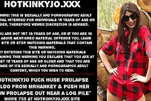 Hotkinkyjo Fucks Huge Prolapse Dildo Outdoors by Log Pile