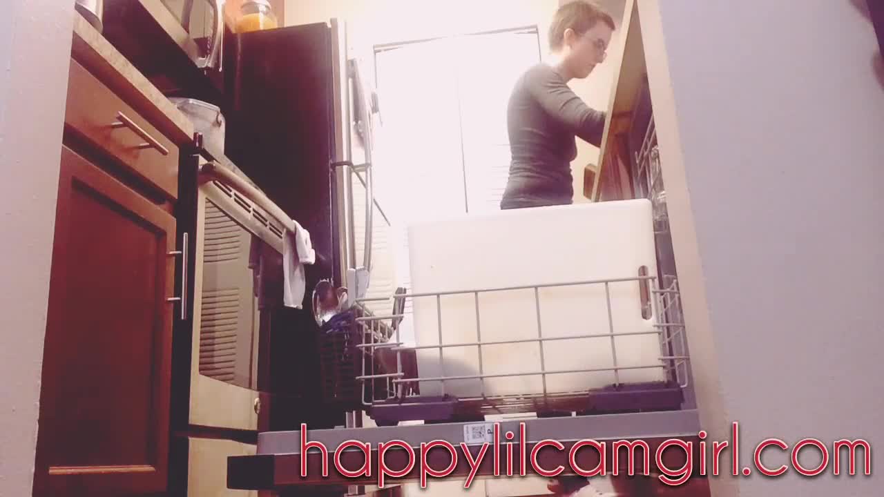 My sexy hijastra cleans kitchen in tight dress, showing hot ass