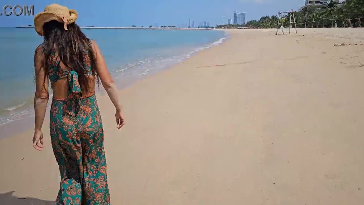 Crazy Girl Pees on Public Beach Soaking Her Pants.